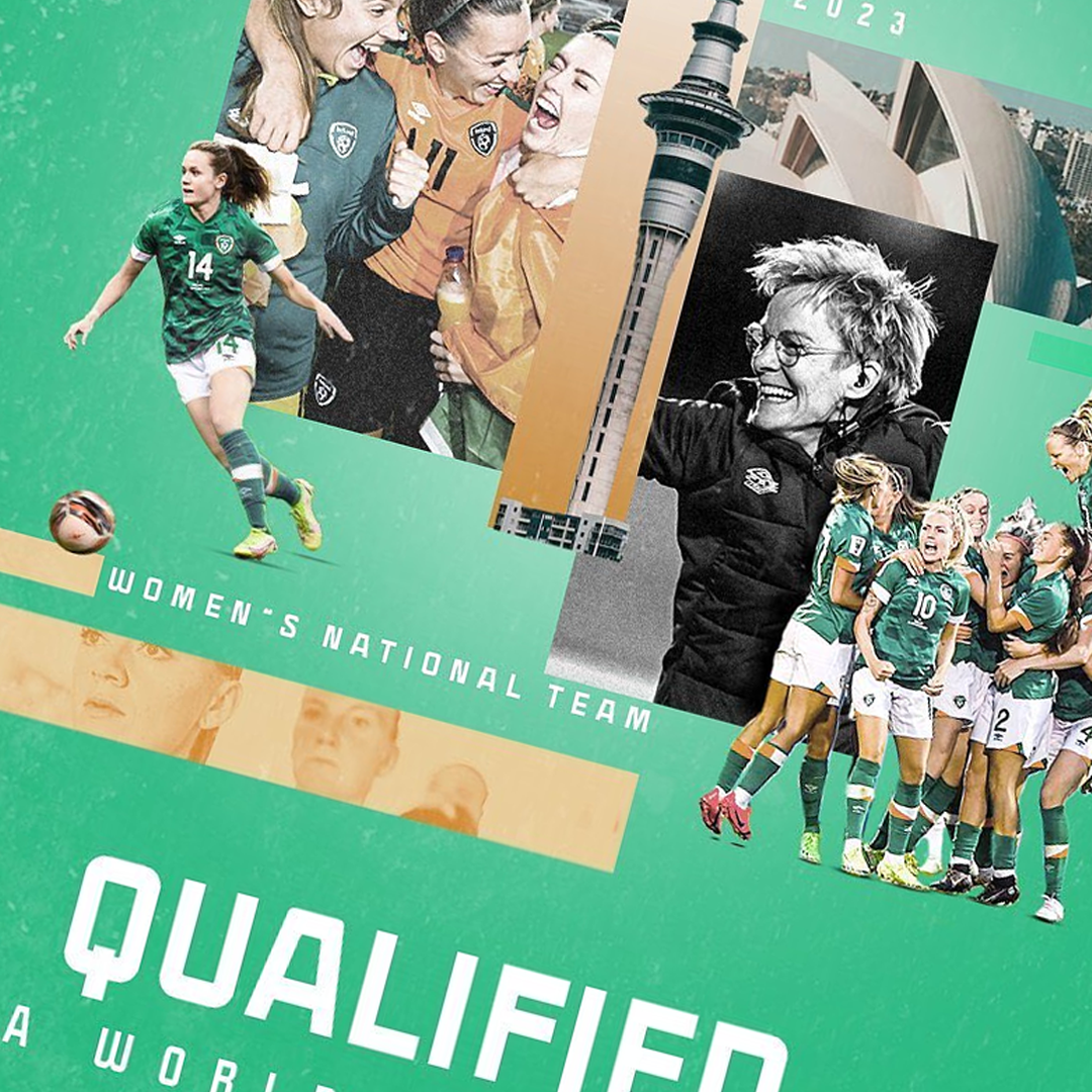 Capturing the historic moment of Ireland WNT’s World Cup qualification, I designed the Qualified graphic to celebrate the team’s achievement. The visual was shared across digital platforms, rallying fans and marking a milestone in Irish football.
