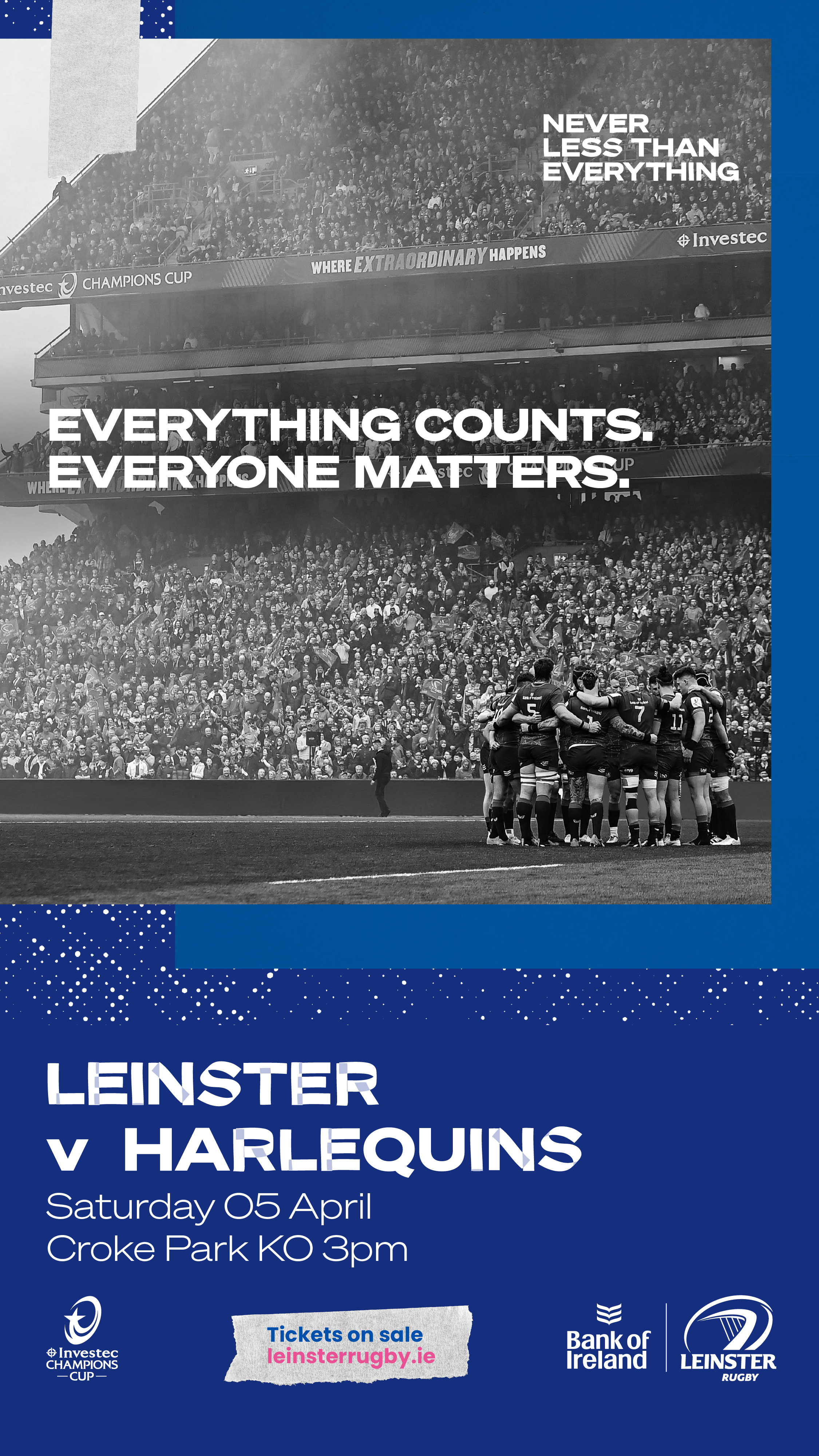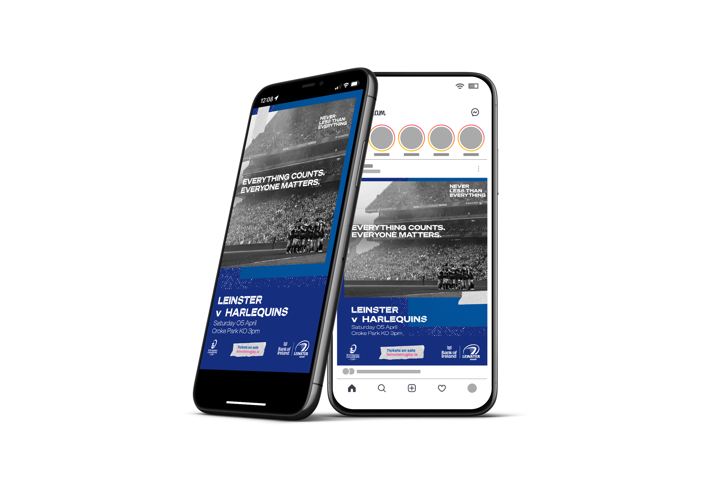Rooted in Leinster Rugby’s brand ethos of unity, determination, and collective effort, the creative taps into the emotional gravity the European clash. The platform reinforces the significance of every supporter, every play, and every moment.